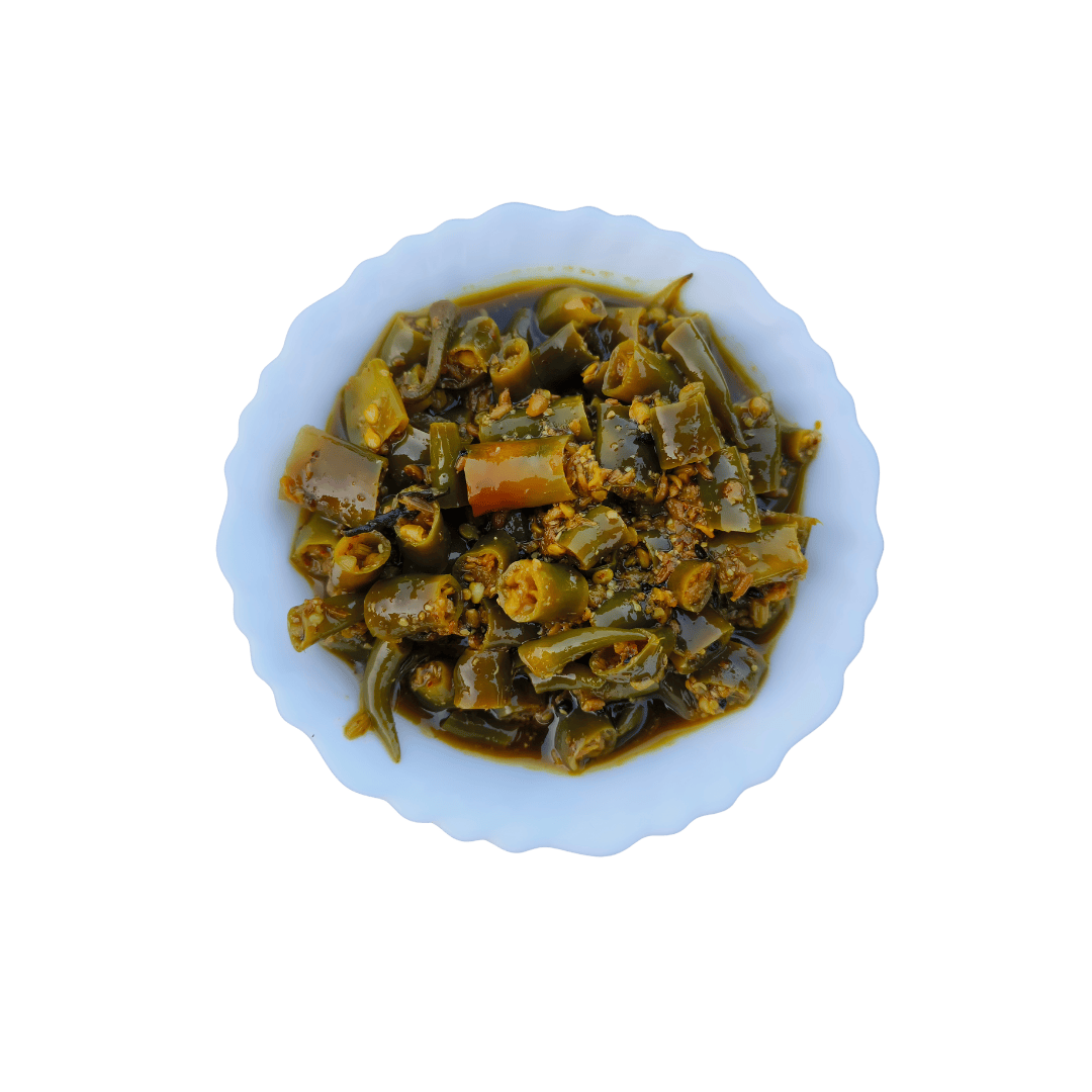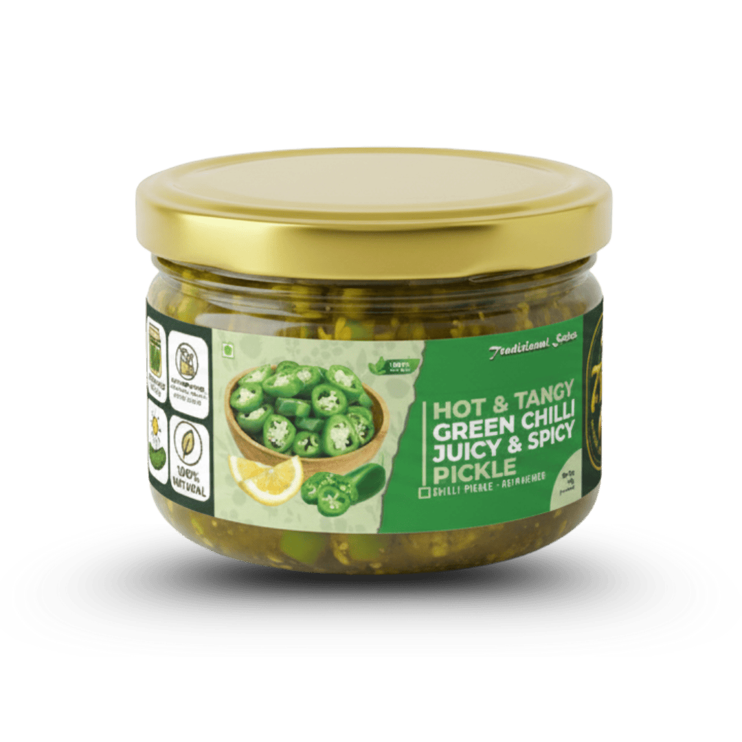 Spicy and unapologetic, our green chilli pickle is for those who love food with passion. Each bite carries the raw essence of homemade meals and fiery affection. It’s a simple, honest pickle that adds a spark to your plate and your day.